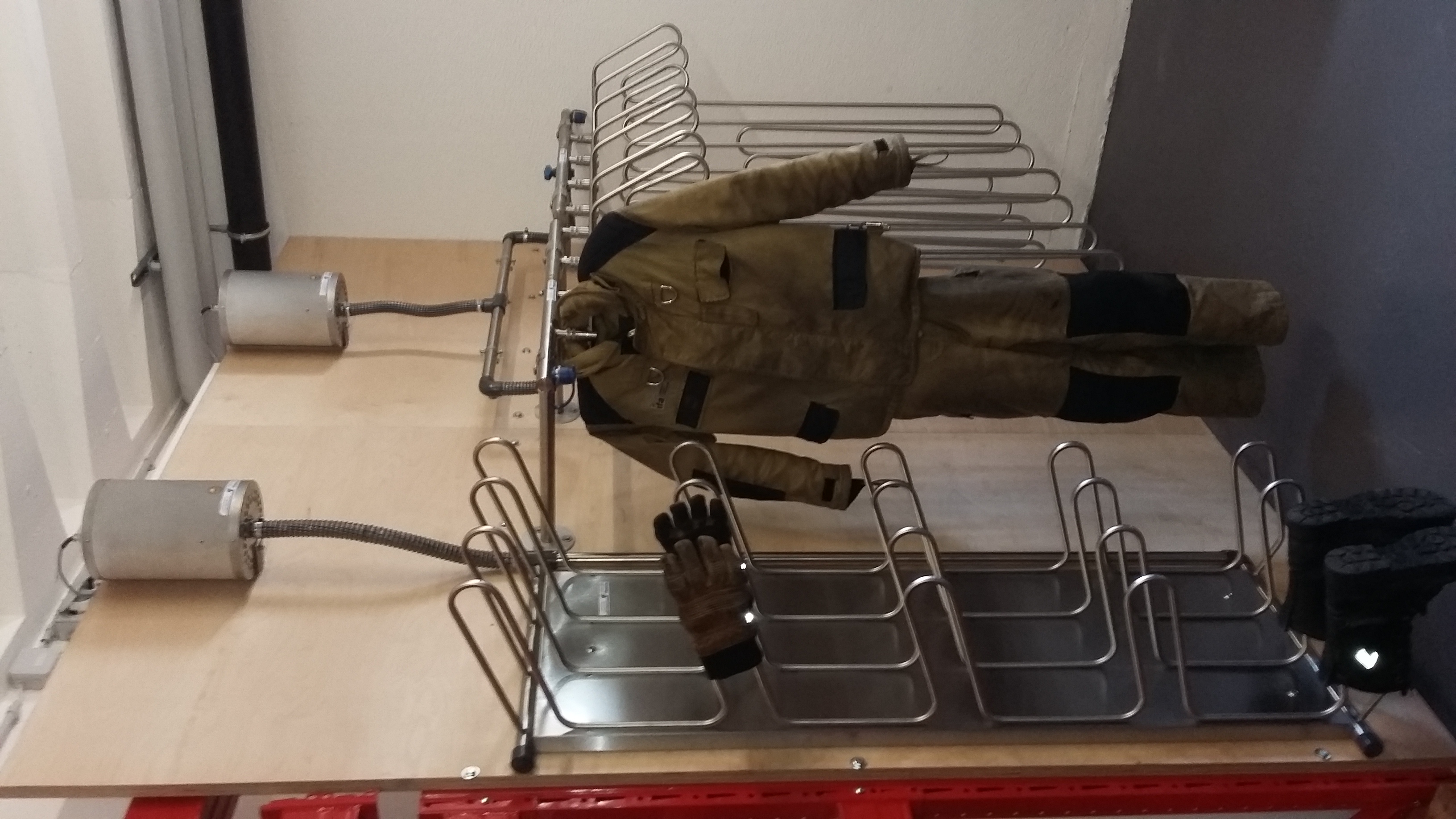 Für die rasche Trocknung der nassen Kleider, kompl. mit Trocknungsanlage Top Trock, mit bürstenlosem Warmluftgebläse, Temperatur ca. 38 grad (am Ausgang 20 grad), Leistung 1350 Watt, 230 Volt, Rohre aus Edelstahl